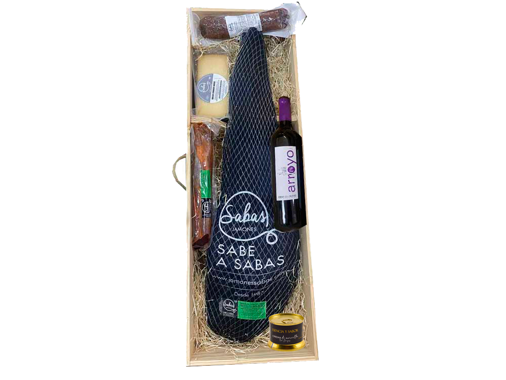 Este magnífico lote nº 15 con jamón ibérico incluye: